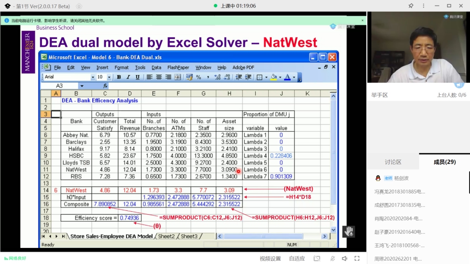蒋雯教授、邓鑫洋副教授邀请,英国曼彻斯特大学商学院决策与认知科学研究中心主任Jian-Bo Yang教授于2020年8月21日至2020年8月28日在我校举办的“暑期国际学堂”活动中,在线讲授了“Risk, Performance and Decision Analysis / 风险,绩效与决策分析”课程。我校包括本科生、硕士生、博士生在内的30余名学生参加了该课程的学习。