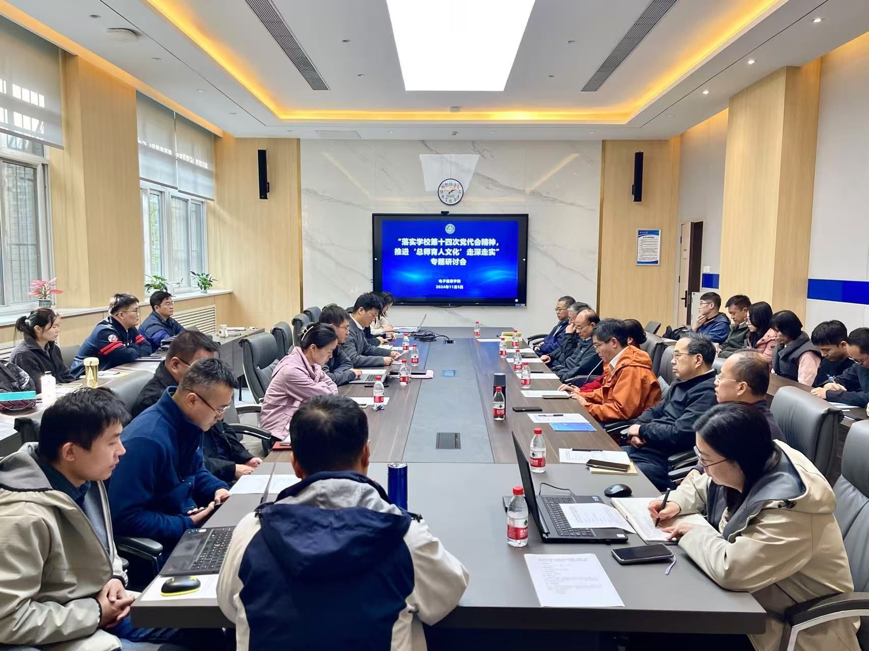 在119会议室召开“总师育人文化”走深走实专题研讨会。党委书记侯俊、党委副书记高敏、副院长高永胜、各专业负责人、各系主任、各课程(群)负责人以及近三年新入职青年教师参加了此次会议,会议由高永胜主持。
