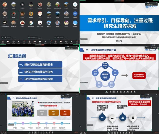 通信工程系于2024年11月10日开展了线上交流学习的研究生导师培训活动,共有30余位老师参加。本次培训特邀西北大学贺小伟教授担任主讲人,进行题为“需求牵引,目标导向,注重过程研究生培养探索”的专题报告。
