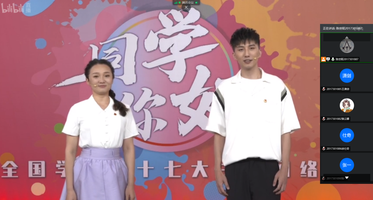 20208171930分,成人app 2017级本科15个团支部,在积极响应院团委下发的通知下,由团支书们组织本支部同学共计288名团员参与了观看以“同学,你好!”为主题的中华全国学联第二十七次代表大会。