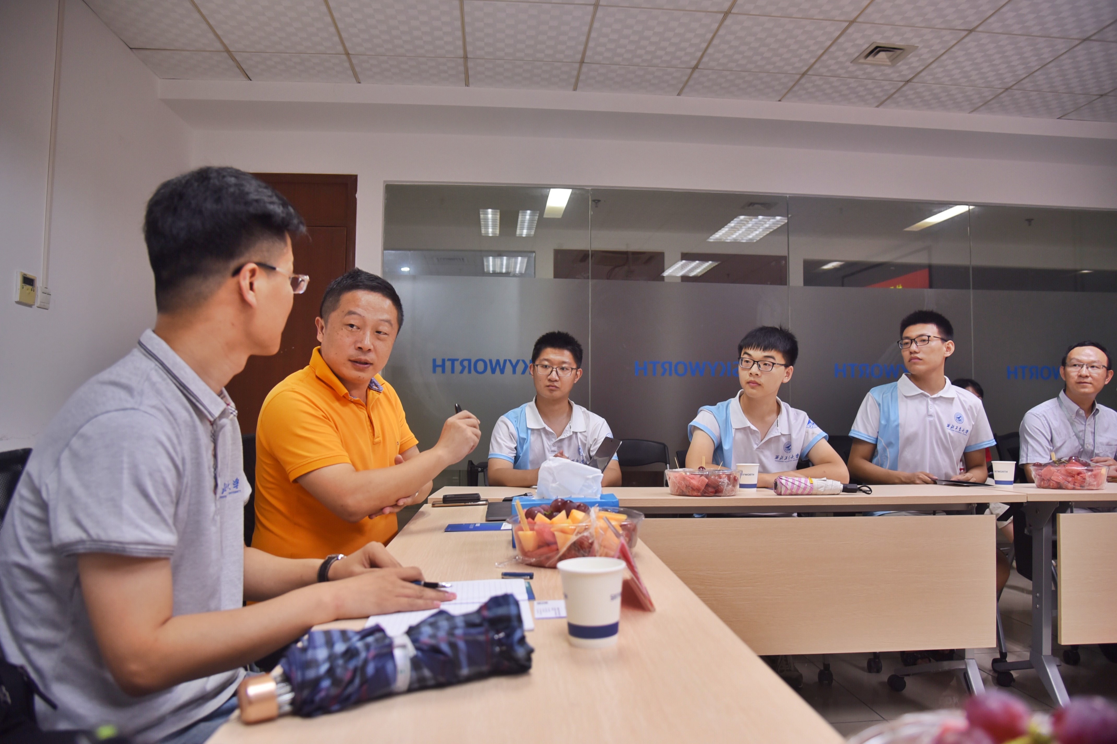深圳创维运营总部行政人力资源部总监梁金魁从七个方面给大家全面的介绍了创维的相关信息,包括智能制造、技术创新、品牌矩阵、社会责任、人才培养等,让实践队的同学们对创维集团有了全方位的了解。针对本次社会实践调研任务,同学们在是否读研、实习安排、工作规划等方面提出了很多问题,人力资源部经理沈文娟、周晓东一一进行了详细解答。
