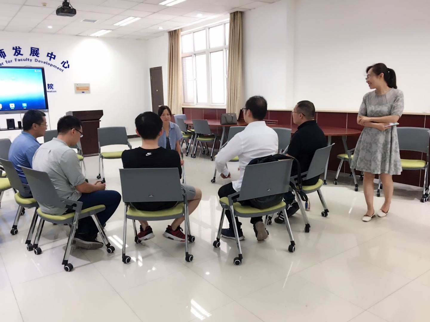 “知心阁”邀请到了西安市精神卫生中心青少年儿童心理科主任钟意娟老师,于2019年7月5号为青年教师群体做了“心理疏导与心理危机干预”交流会。
