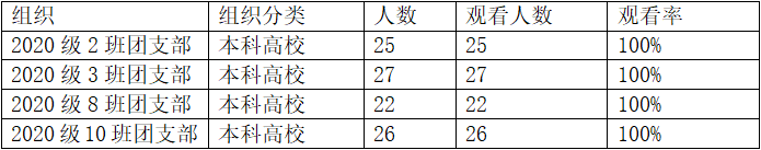 团委各支部贯彻落实相关要求,带动共青团员一同加入学习。其中,20级新生情况非常乐观,覆盖率均达到90%,19级学习覆盖率也达到了80%左右。其中20级有4个团支部学习覆盖率达到100%,在此对这些团支部提出表扬!