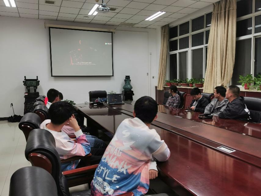 楼159会议室观看电影《金刚川》,学习中国人民志愿军在抗美援朝中以血肉之躯顽强拼搏的英勇精神。