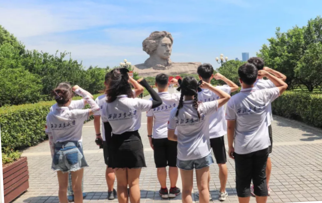 橘洲阔地,静静矗立着一座瞩目的人物雕像,北望湘江、西枕岳麓,尤为壮阔豪迈。炎炎烈日下,来自五湖四海的游客们,齐聚橘子洲头,瞻仰毛泽东青年艺术雕像。在实践学习中,分队成员采访了一位王同学,他说:“我也来自西安,跨越千里,就是来瞻仰毛主席雕像的,仰望雕像,能感受到青年毛泽东胸怀天下与指点江山的雄姿。”