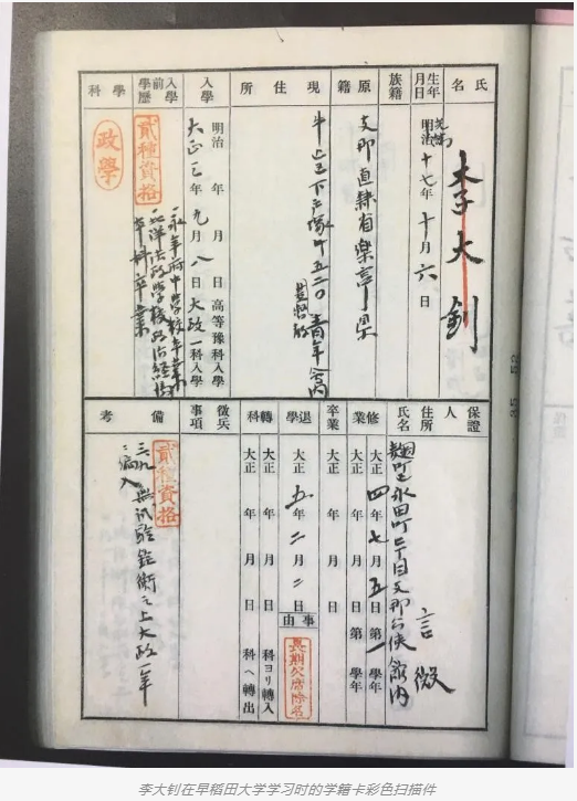 1913年底李大钊在友人资助下含愤东渡日本留学。1914年,他考入东京早稻田大学政治本科,接触到了《马克思宣言》以及《资本论》的日译版,还曾与同学张润之合译《中国国际法论》,开阔了知识视野和眼界,高度的爱国主义和革命民主主义思想有了进一步的发展。他还以文会友,在日本结识了章士钊等人,对日后的思想和工作产生深远影响。