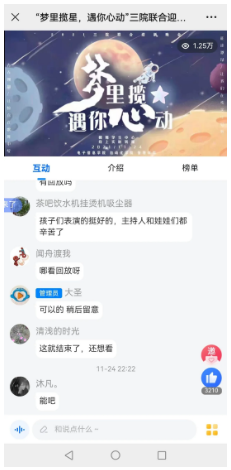 最终本次晚会的在线点击次数为1.25万。既然把信任给了我们,那么就返还给大家加倍的精彩!
