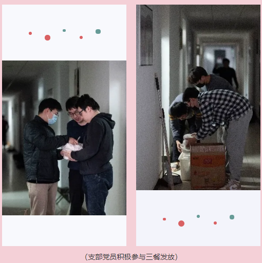 除了以上两位党员,本科第三党支部还有很多投身在一线志愿工作的党员,为保障同学们的日常生活贡献了自己的一份力量。