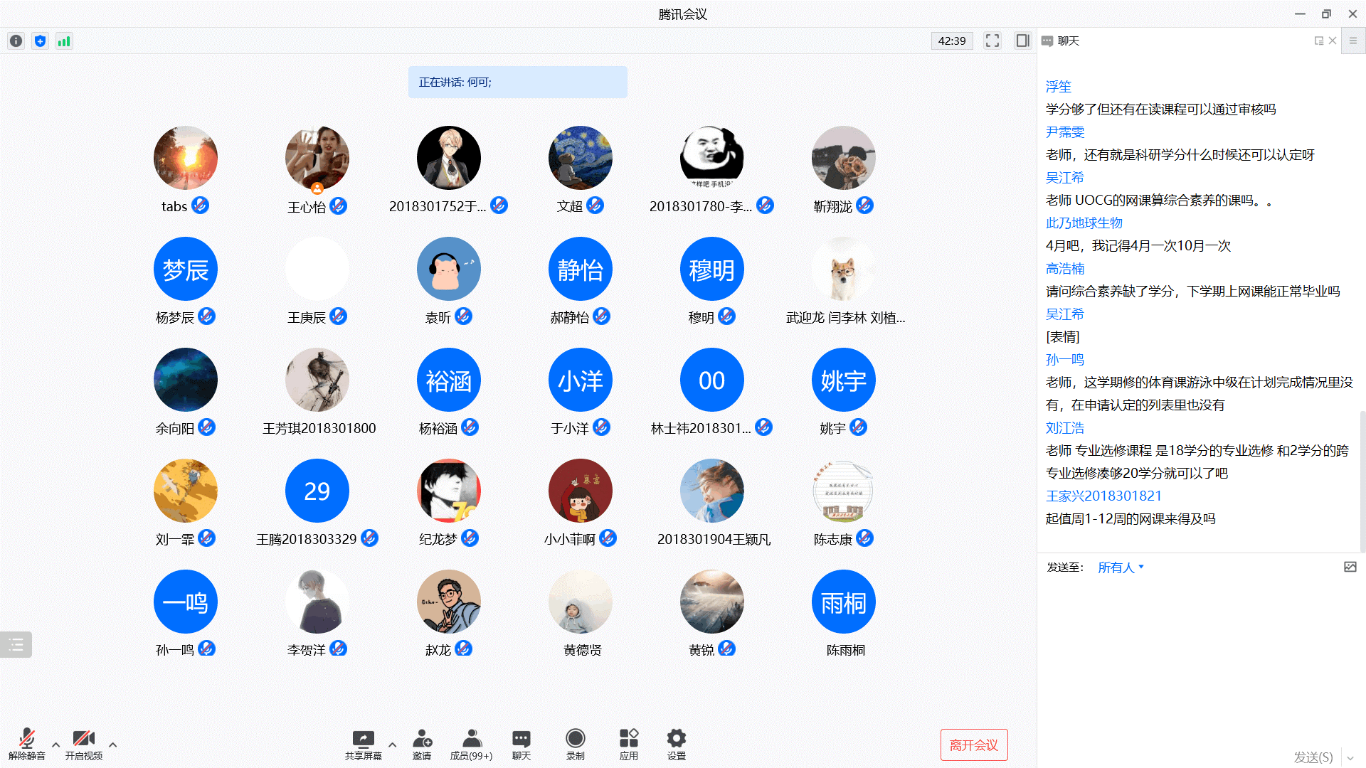 针对毕业学期的学业问题,教务处老师进行了约20分钟的线上答疑环节,同学们提出了很多与毕业相关的问题,老师们一一进行了解答。