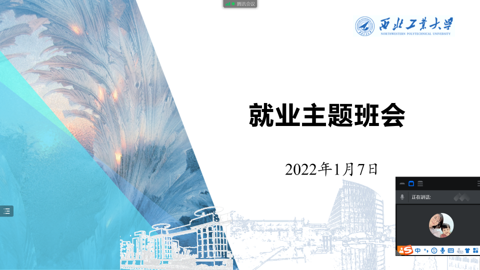 于2022年1月7日下午四点通过腾讯会议在线上召开了就业指导主题班会,特别邀请四位2022届毕业生给大家分享求职经验。班会由研究生辅导员冀璐阳主持。