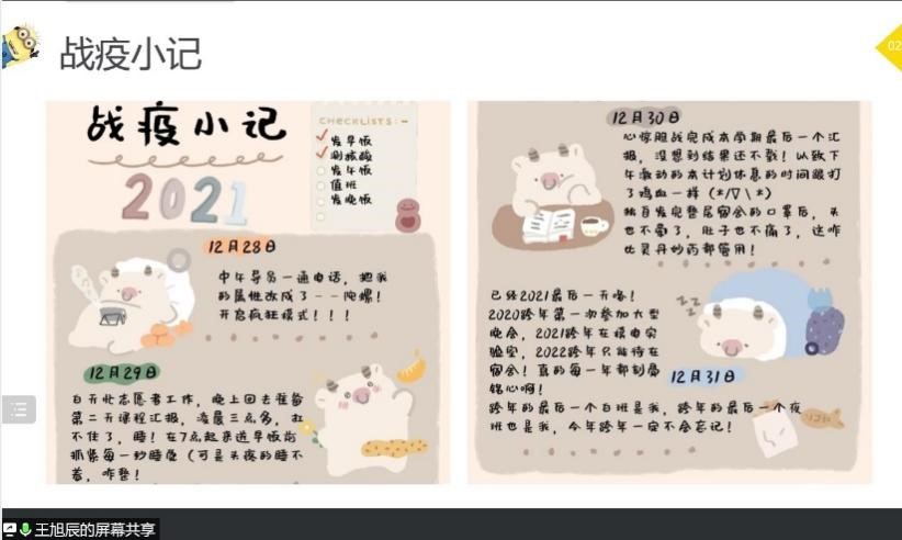 最后,张欣老师对本次会议进行了总结,要求同学们认真配合做好疫情防控相关工作,遇到问题和困难及时找辅导员以及学院沟通,鼓励大家积极参与志愿者服务工作,携手共同战疫,同时希望大家调整好状态,以饱满的精神投入到新学期的课程学习中!
