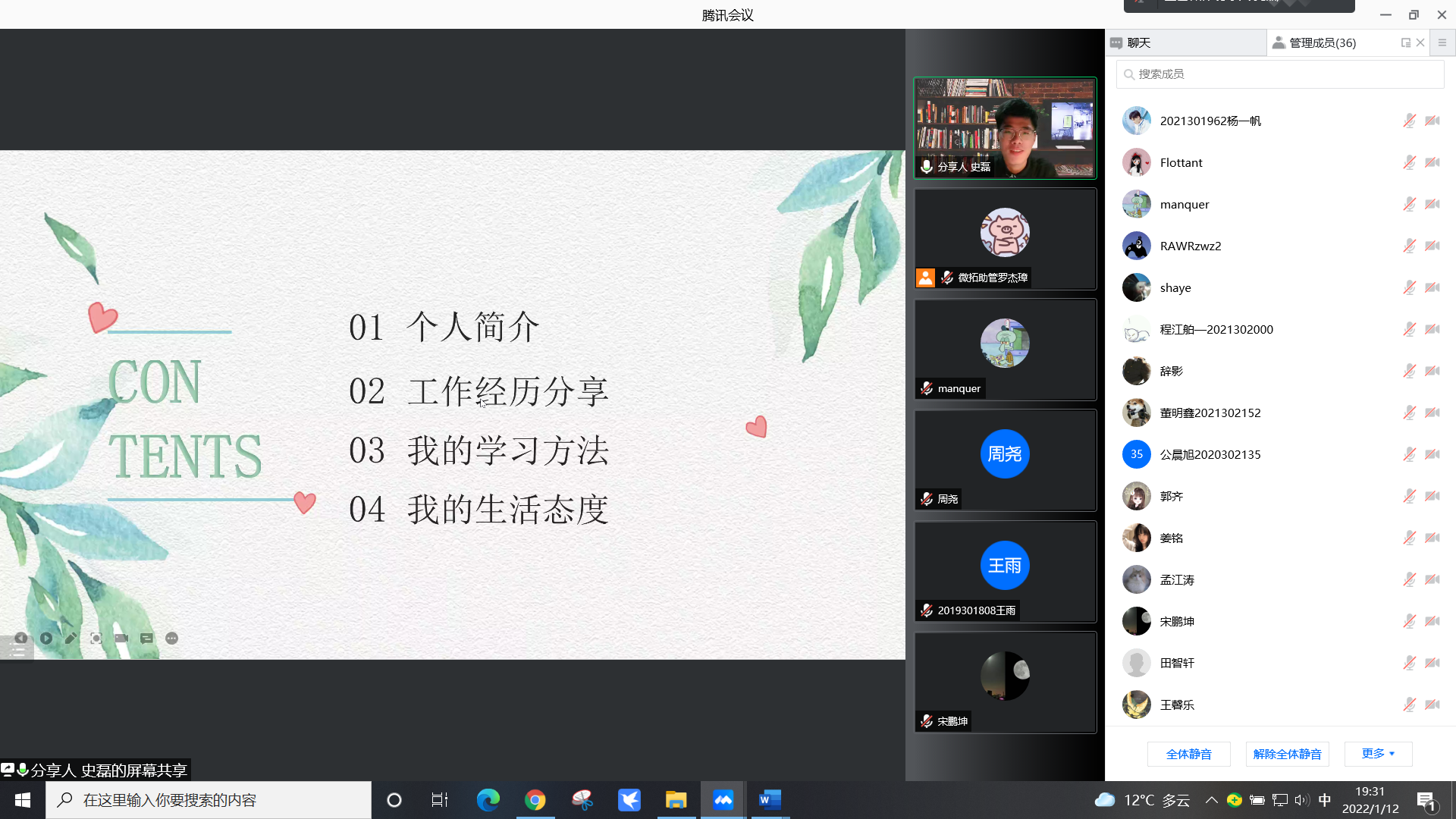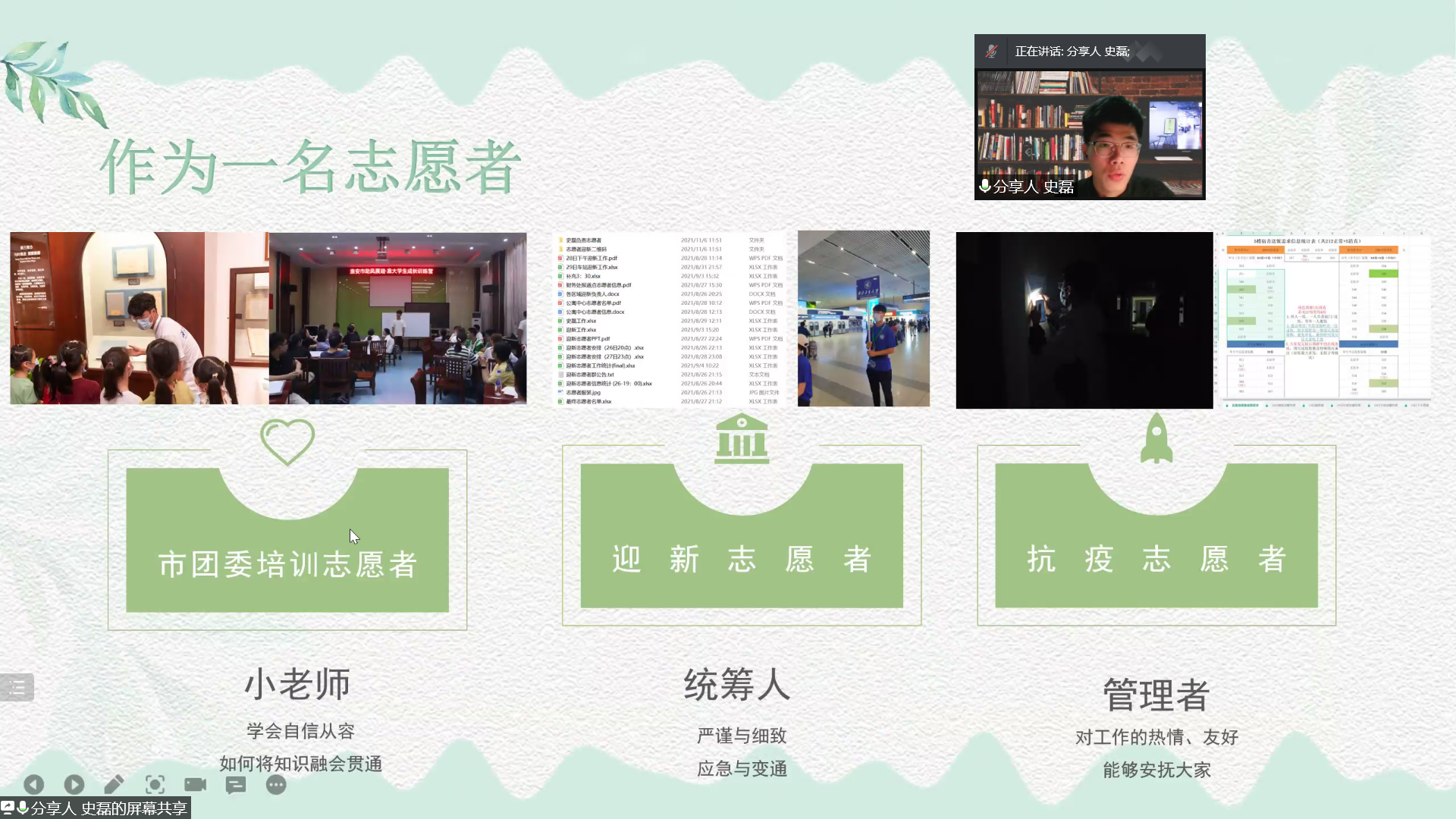 2019级本科生史磊,曾获“互联网+”大赛省赛金奖,十佳学生会干部等荣誉。在本期微拓活动中,史磊同学结合自身经历,分享了在学生会工作中的收获、大学以来的学习经验,以及平衡学业、工作与生活的一些技巧。史磊还讲述了参加志愿者活动的经历,激起了同学们投身公益活动的热情。