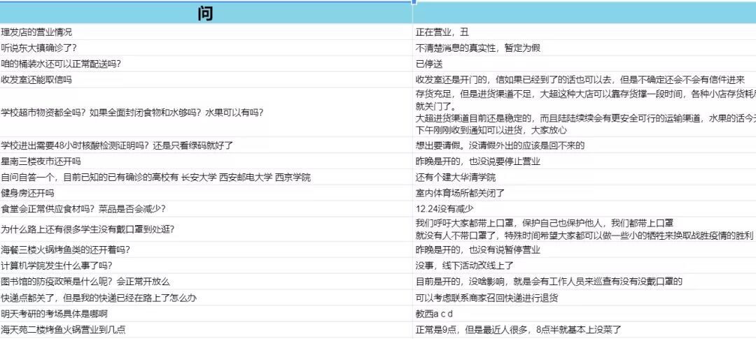 “信愿”志愿服务队的志愿者们,并在18个小时内形成了一个较为完善的表格,为同学们提供实时消息。在后续文档的维护中,他每天安排两名志愿者继续实地走访,更新状态,并时刻注意表格状况,进行言论审核,让表格持续为大家提供帮助。