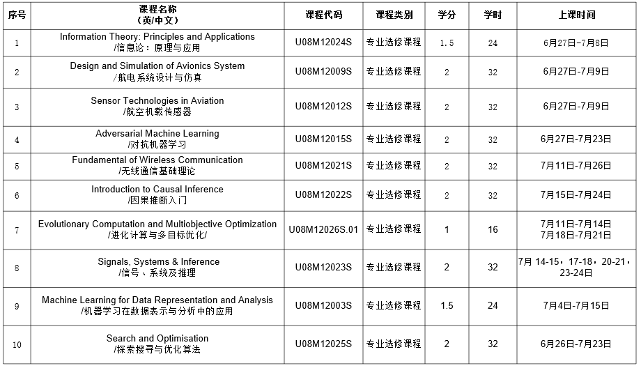 5.课程代码最后一位为“S”的课程为在线暑期国际学堂课程。
