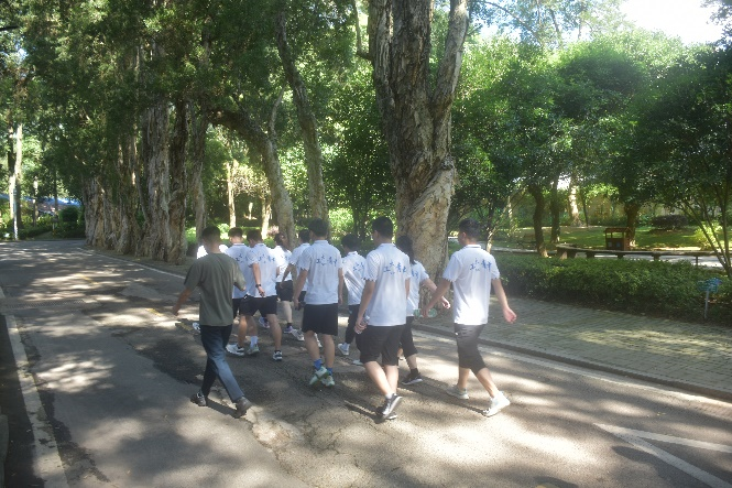 雄关漫道真如铁,而今迈步从头越。7月8日,青春向党百年路,铸得利剑振国风(“青春心向党,从军建国防”)社会实践队在福州某部队实践的第二天,清晨8点半,队员们在部队领导、教官及带队老师的陪同下,开始在福州国家森林公园进行野外徒步行军拉练,大家士气高昂、热情饱满,从头到尾无一人掉队,历时3个小时,成功翻过两个山头,行进10余公里,圆满完成实践项目。再回首,青山叠嶂,汗湿的衣服和晒红的脸颊都意味着队员们身体素质得到了提升,坚强意志得到了锤炼。