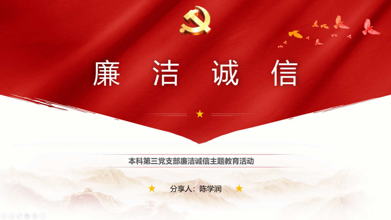 本科第三党支部以线上的方式召开了“廉洁诚信,从你我做起”的廉洁诚信主题教育活动,由保密委员陈学润同志为大家分享有关内容。