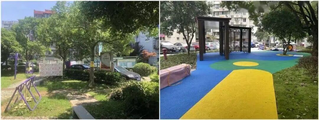 (桃源小区东门和休闲廊架改造前后对比照 来源网络)