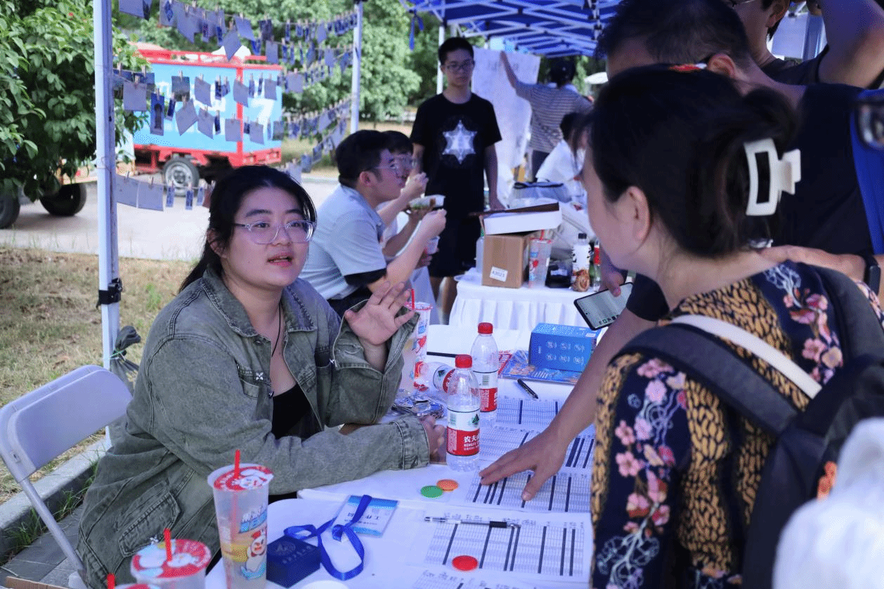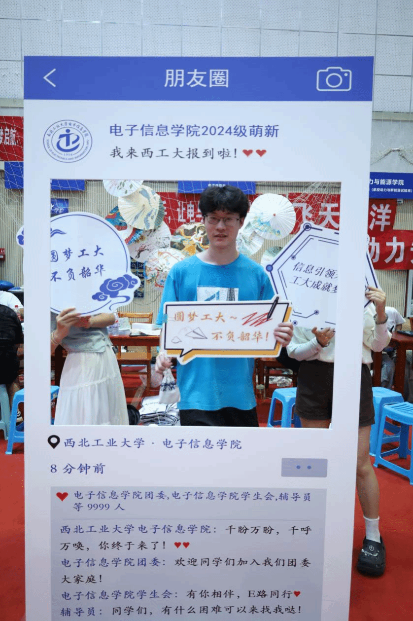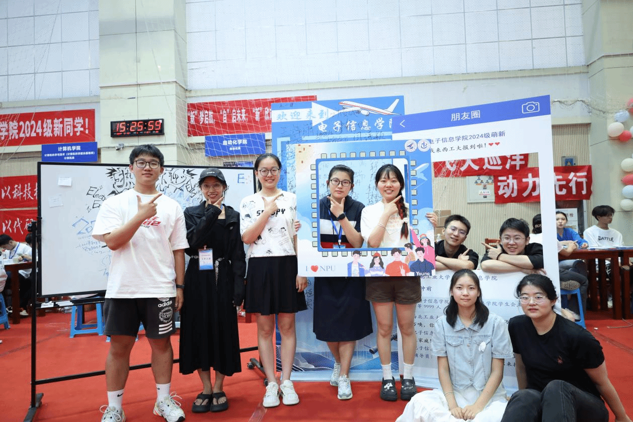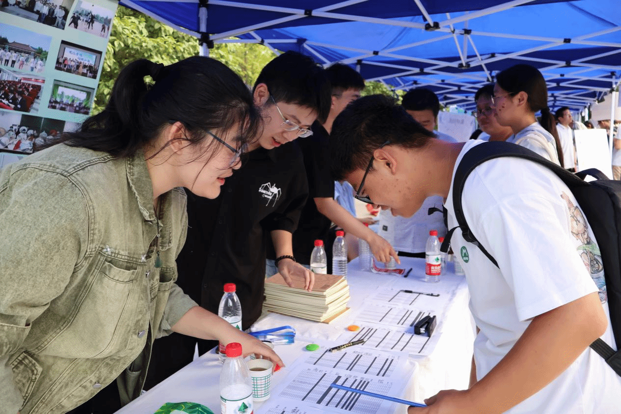 纵使骄阳似火,负责外场迎新工作的志愿者们依旧耐心地为小萌新们讲解报到流程,指引方向,热情地解答大家的疑惑,分发学院为大家精心准备的迎新礼物。此外,学院特定为新生们定制了签名墙,以供大家进行合影留念,希望让新同学留下一段温暖而难忘的回忆。