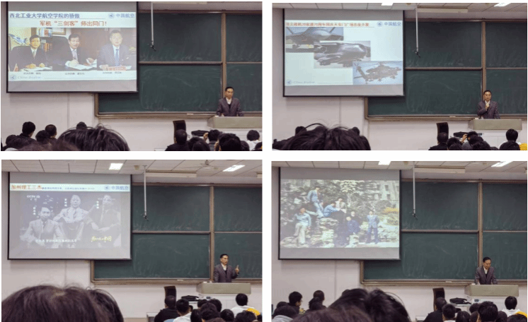 航空报国,志在超越。李华星以中国航空史为背景,生动讲述了中国航空事业历经艰辛走向辉煌的奋斗历程,从“美国轰炸中国驻南联盟大使馆”的屈辱历史,中国航空航天科技的奠基人钱学森克服万难归国,再到歼20、运20大型运输机、直20中型多用途直升机、C919大型客机等国产飞机的突破与成就。李教授特别分享了西工大校友、“军机三剑客”——歼20总设计师杨伟院士、运20总设计师唐长红院士、直20总设计师邓景辉等航空总设计师的成长之路和英雄故事。正是一代代科学家勇攀高峰、敢为人先,以永不言弃、团结协作的精神,才建立起了中华人民共和国蓝天上的坚固防线!