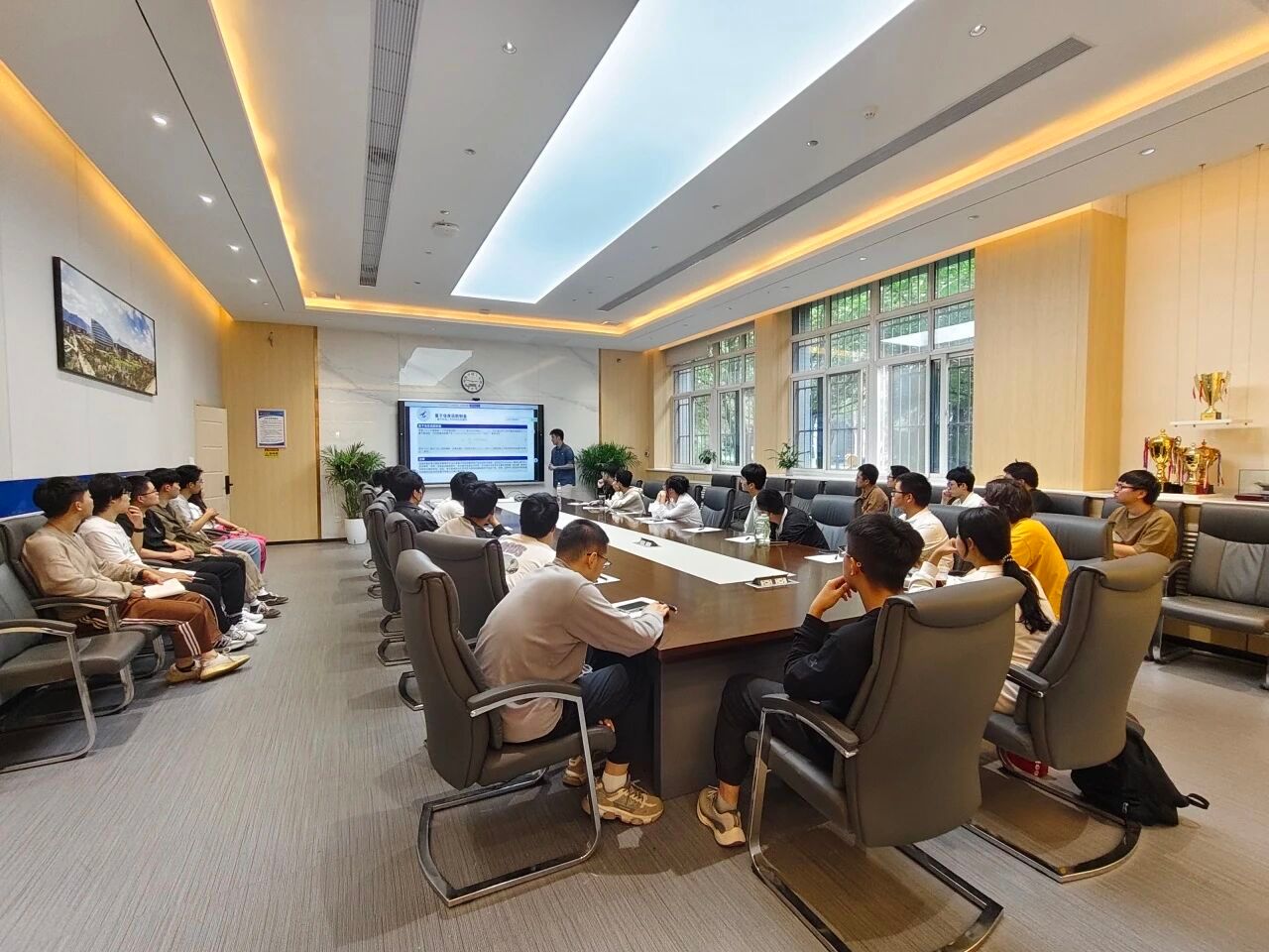 团队一行来到中电38所,师生从空警200预警机雷达等装备的研发历程中,了解到该所在国防预警领域创造的多项“第一”;在中电 43 所的展厅里,专家向同学们介绍了航天级芯片的自主化突破,彰显了其在微电子领域的“隐形冠军”地位。在科大讯飞,智能语音翻译机、星火大模型等产品的演示令大家惊叹不已。同学们切身感受到了其AI技术在语音识别、自然语言处理等领域的全球领先实力。