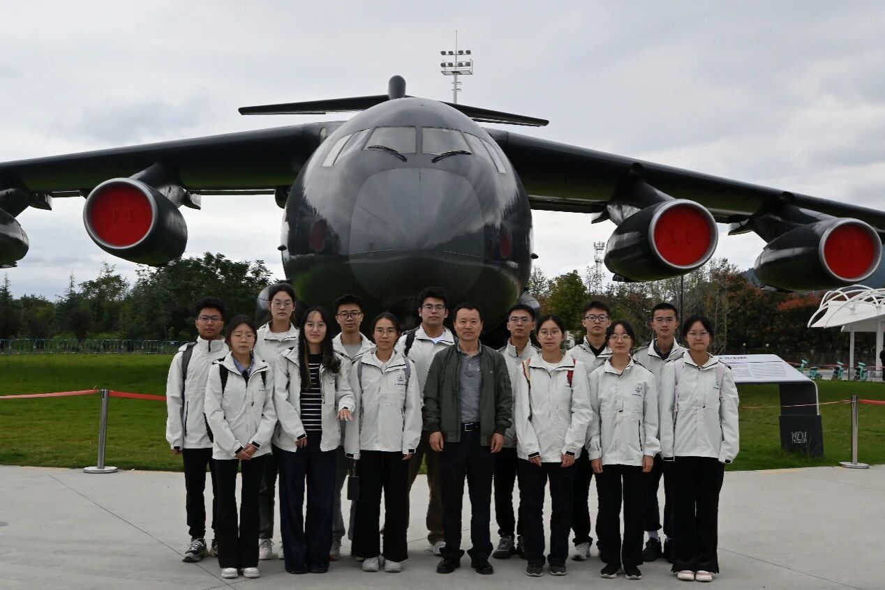 在实践中心飞机展示区,张景亭带领师生们近距离参观运-20、歼-6、强-5、轰-6等航空整机装备。来到“胖妞”前,他停下脚步,结合自身数十年试飞经历,向师生们讲述我国飞机座舱设计的演进史:“从早期的3座、4座机型,到后来2座型实现多数场景覆盖,再到如今向单座型精准化发展,每一步都藏着中国航空人的攻坚克难。”生动的讲解让师生们对航空工业发展历程有了更直观地认知。