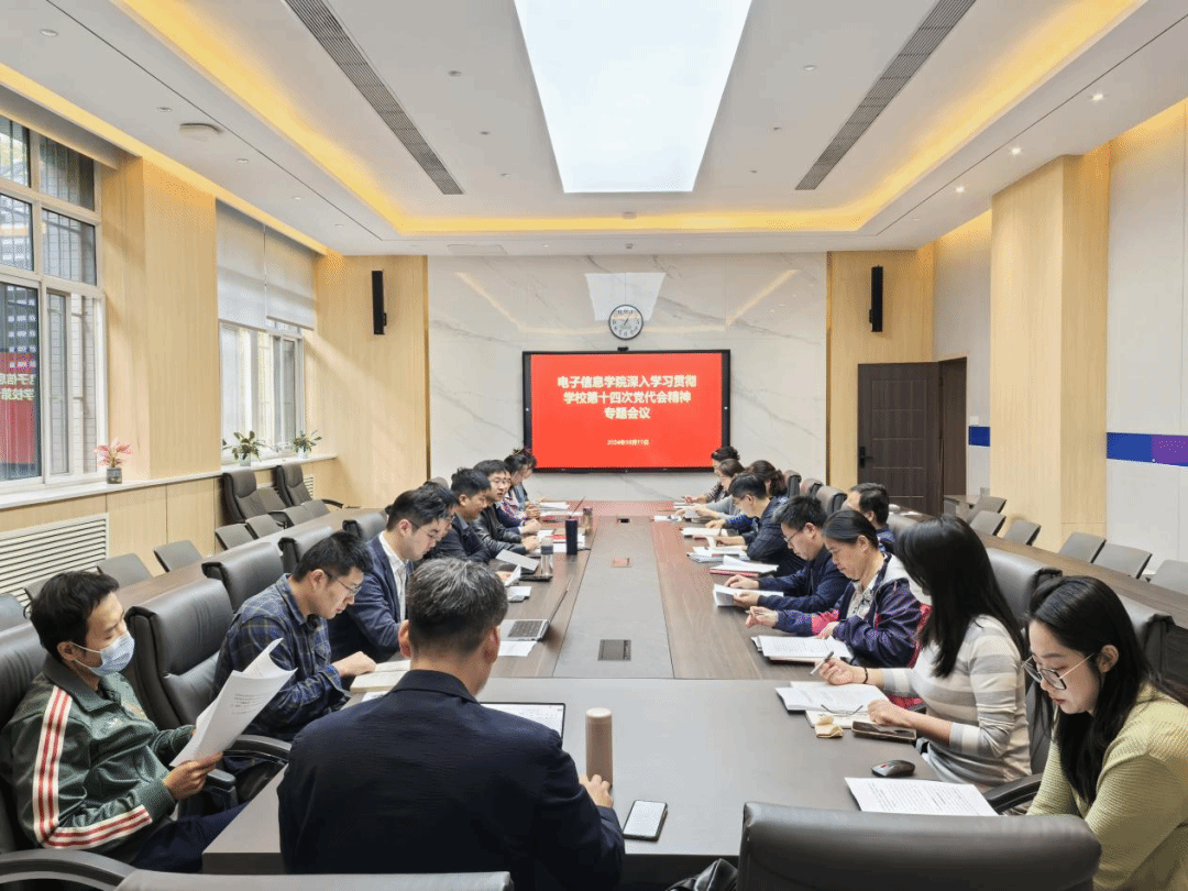 组织召开专题会议传达学习学校第十四次党代会精神,研究部署贯彻落实举措。学院班子成员、党委委员、院长助理、教工党支部书记及系(副)主任参加会议,会议由学院党委书记侯俊主持。