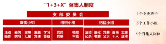 支部实施“1+3+X”召集人制度,注入党建新动能,在规范党员发展,提升支部凝聚力,调动成员积极性,提升队伍素质等方面效果显著。同时,支部以共享网盘汇总工作信息,做到各种材料有据可查,保证换届时工作顺利交接。支部编写完成《成人app