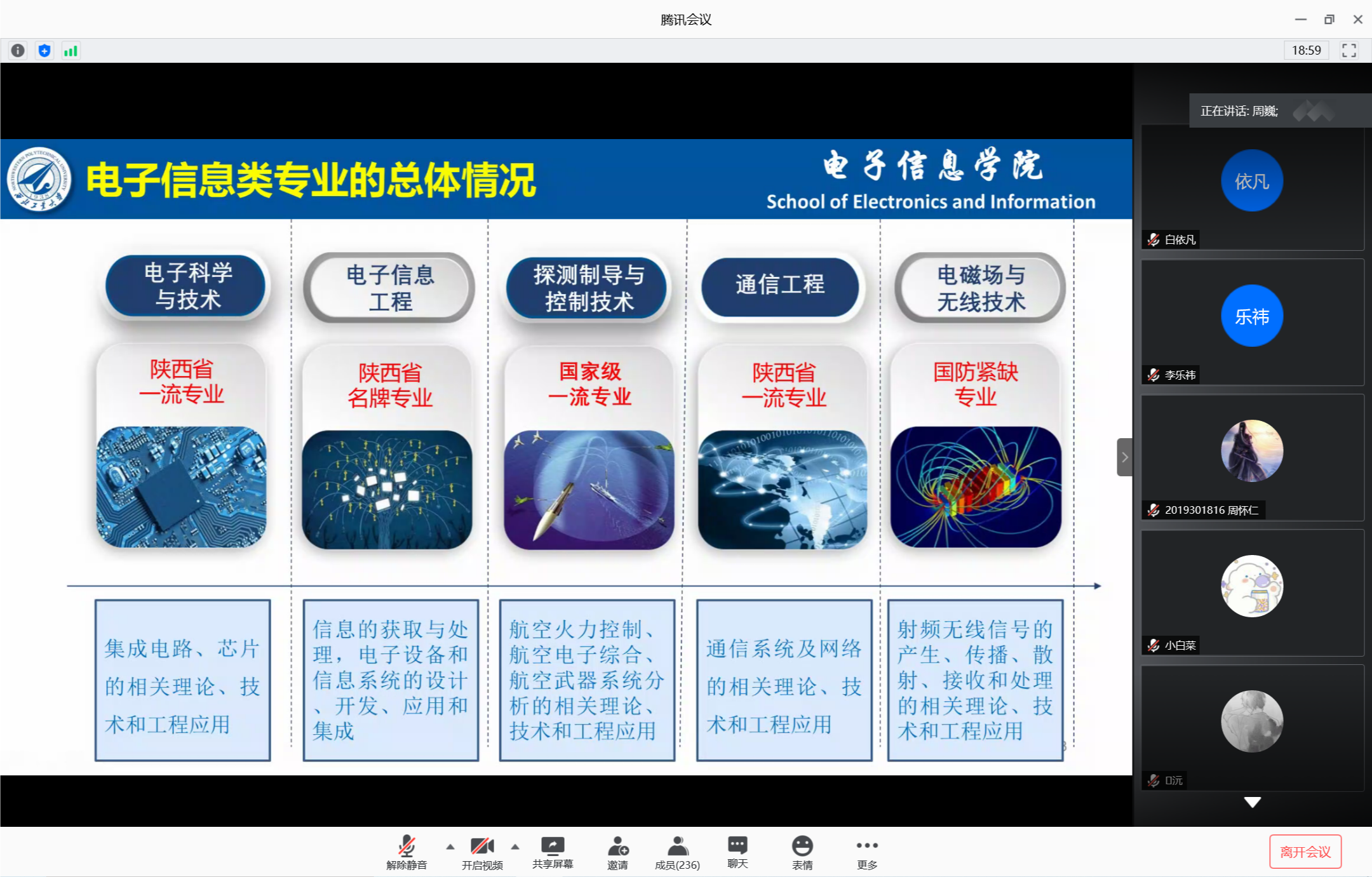 副院长周巍首先系统介绍了电子信息类专业的总体情况,解读电子信息类培养方案的课程设置、大类培养特点。其次,全面介绍了电子信息类五个专业的情况,结合电子信息技术的发展细致介绍了五个专业的培养方向。最后,给同学们重点介绍了成人app