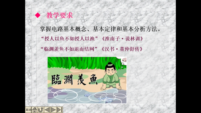 “授人以鱼不如授人以渔”,“临渊羡鱼不如退而结网”,第一次与各位同学线上相见,尹熙鹏副教授就通过《淮南子·说林训》和《汉书·董仲舒传》中的两句名言,告诉了大家课程学习的本质,“电路基础这门课程目标绝对不是做对习题,而是掌握分析方法。电路分析中的各种题就好比是那鱼,而方法就是网。”一个有思想的人,才有力量。第一次课,尹老师便在线奉送给了学生一份力量,让学生领悟到做事情的思想和方法是解决问题的金钥匙,获得了如何学好电路基础课程甚至是所有课程的秘笈。