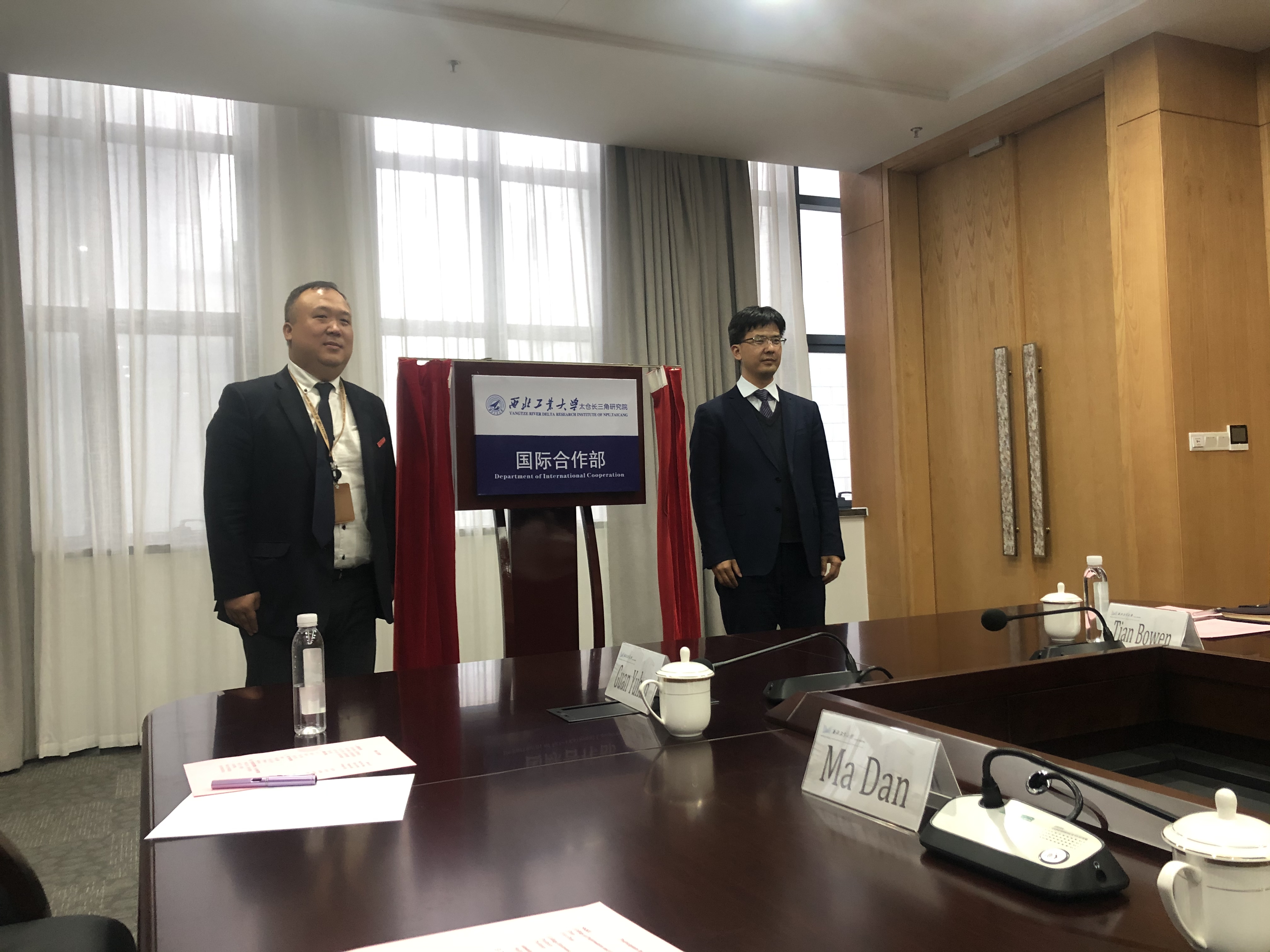 随后,访问团就太仓校区、长三角研究院建设发展情况,建立西工大-成均馆大学联合研究实验室进行座谈交流。郑曦常务副院长代表长三角研究院与太仓校区管理委员会热烈欢迎访问团一行的来访长三角研究院张铁邦副院长介绍了长三角研究院情况;周德云院长简要介绍了我校和成均馆大学关于合作办学的进展筹备情况,并介绍了国际联合研究实验室的科研方向和目标利处长表示大力支持我校和成均馆大学合作办学,并提出了明确要求;郑曦常务副院长作了总结发言,代表太仓校区管委会和长三角研究院表示大力支持与成均馆大学建立国际联合实验室落户太仓。座谈结束后,June-Ho Yi院长和周德云院长签署了国际联合研究实验室合作协议利处长和郑曦常务副院长共同为长三角研究院国际合作部揭牌。