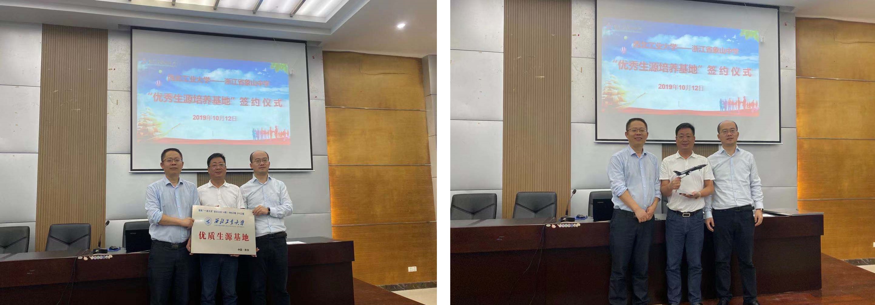 近年来,学军中学和象山中学为我校输送多名优秀学生,我校又为这些优秀浙江学子提供了适合自己发展的良好环境。今后,我校会以优质生源基地为平台,积极支持两所中学的教育改革,拓宽合作渠道,推进相互更深入广泛的合作,争取有更多优秀浙江学子考入西工大。