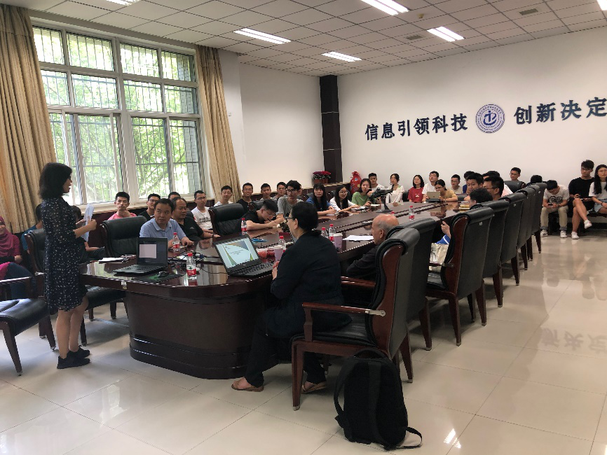 Habiba教授介绍了基于超材料的吸收器MA),其中心频率约为8~10GHz,带宽为3~4GHz,工作在雷达带宽。该吸收器结构实现了低轮廓,其可以达到非常接近理论极限的厚度值。在垂直入射下可获得整个带宽中大于90%的吸收率。与会师生与Habiba教授就目前基于超材料吸收器的结构设计问题展开了热烈的讨论,了解了均衡器-驱动器的最新研究方向,并就这一议题与Habiba教授进行了积极的研讨,并对Habiba教授的精彩报告表示了诚挚的感谢。