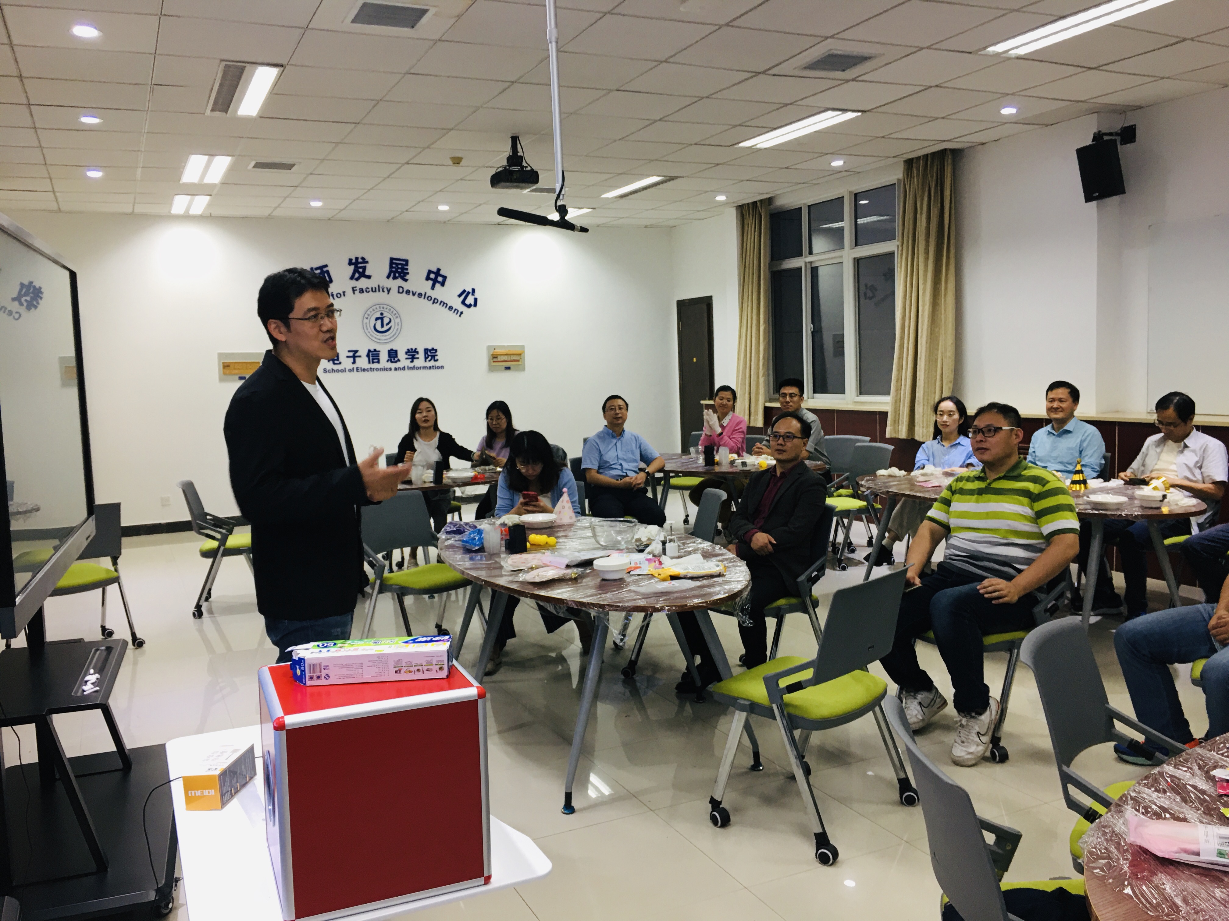 二十余名教师齐聚院教发中心275室为九、十月份生日的教职工举办“共迎中秋”集体生日会。学院领导和教师们欢聚一堂,其乐融融,共迎佳节,共度生日。