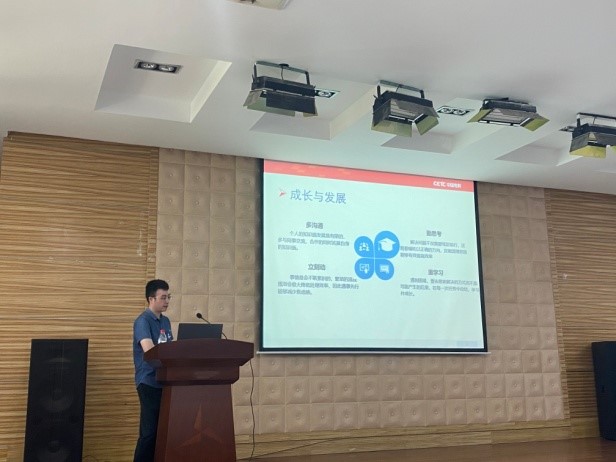 中国电科新一代移动通信创新中心人力资源部马晓卓老师向同学们介绍了中国电科新一代移动通信创新中心的招聘信息、薪资待遇、岗位需求、人才发展策略等,欢迎同学们积极投递,加入中国电科新一代移动通信创新中心大家庭。