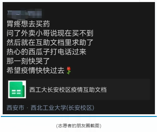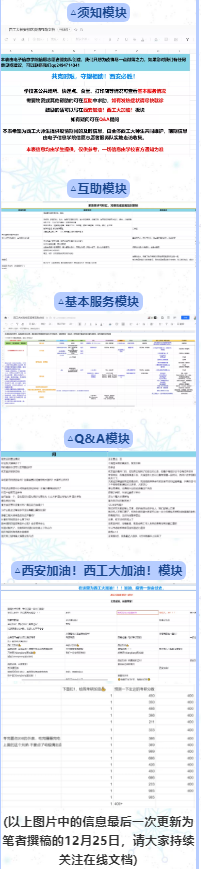 信愿志愿者服务队于12月23日晚创建,灵感来自河南、山西暴雨的“救命文档”以及其他兄弟院校的疫情互助文档。本表希望为西工大师生提供疫情期间的及时准确的信息。表格主要由“互助、基本服务情况、Q&A、西安加油!西工大加油” 四个模块组成。其中部分前期内容由成人app