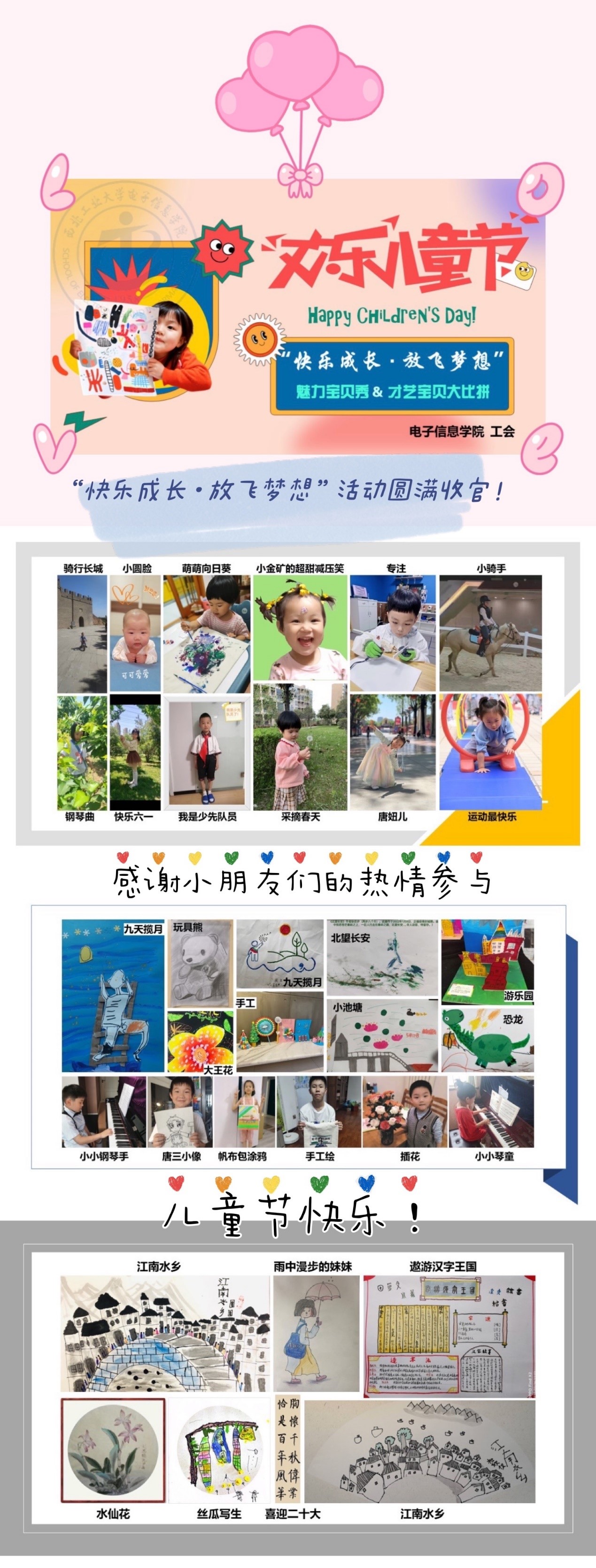 工会组织举办“快乐成长·放飞梦想”六一风采展示活动。活动主要包括“魅力宝贝秀”与“才艺宝贝大比拼”两种形式,小朋友们可以在镜头前展示自己的“才华”(萌态、乐器等),也可以提交自己的“杰作”(绘画、书法、手工等)。活动受到了小朋友们的热烈响应,他们通过书画、演奏、手工、运动等多种形式展示了他们的奇妙世界。