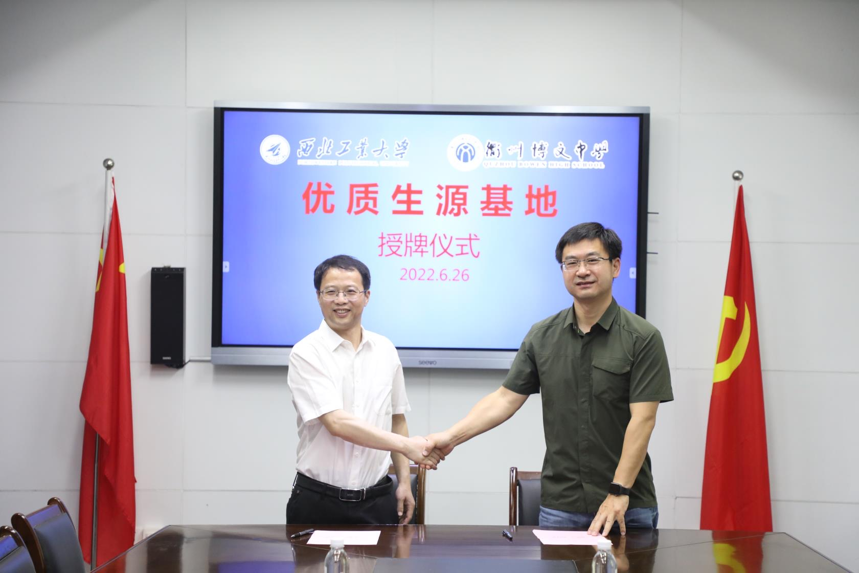 “优质生源基地”授牌活动在衢州第二中学行政楼二楼会议室举行。衢州二中党委书记潘志强、校长翁胜华、副校长及博文中学校长祝凌宇,成人app