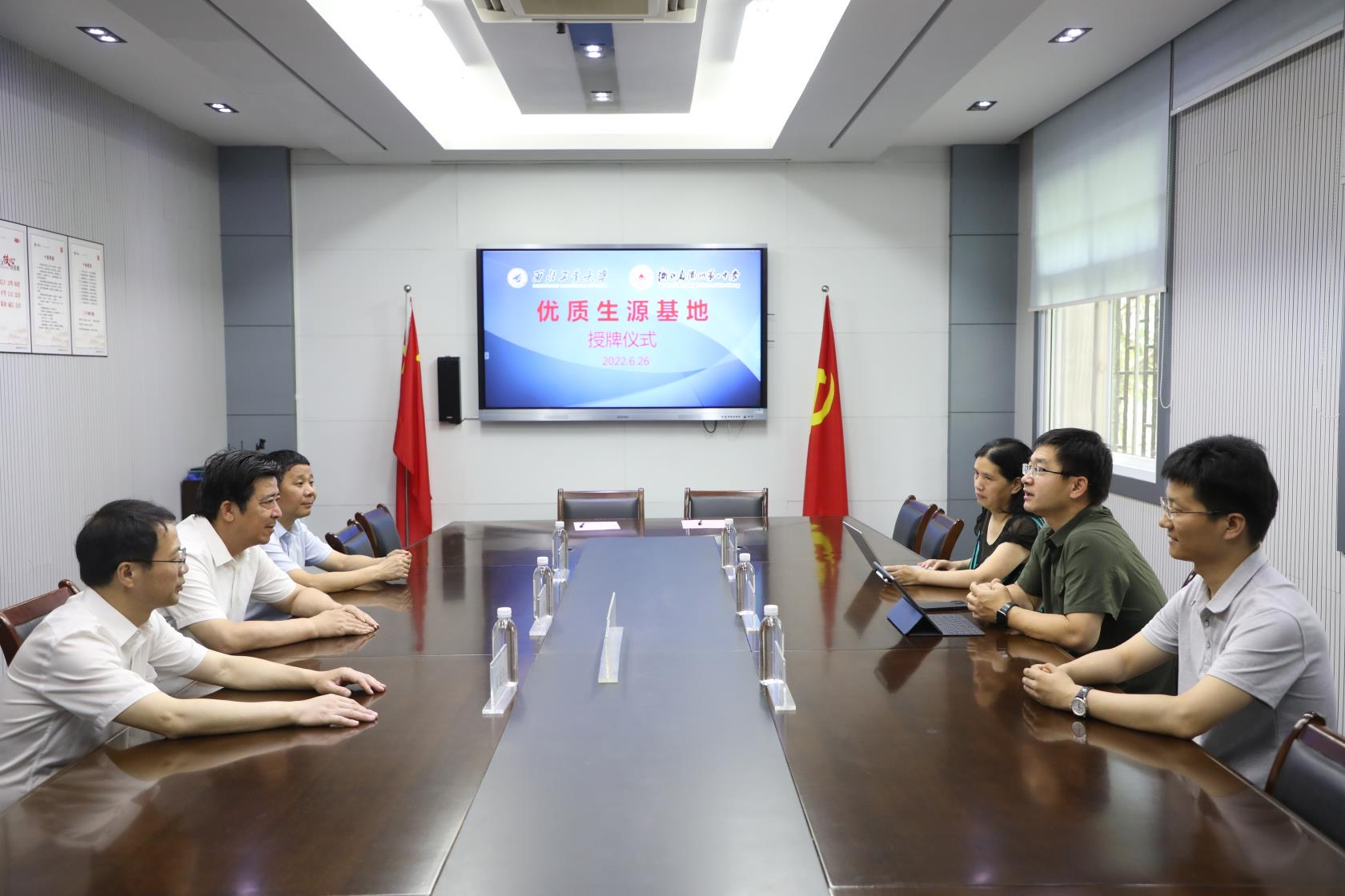 在进行了签约和授牌仪式后,参会领导和教师合影留念,并在会议室、图书管进一步研讨招生宣传相关事宜。