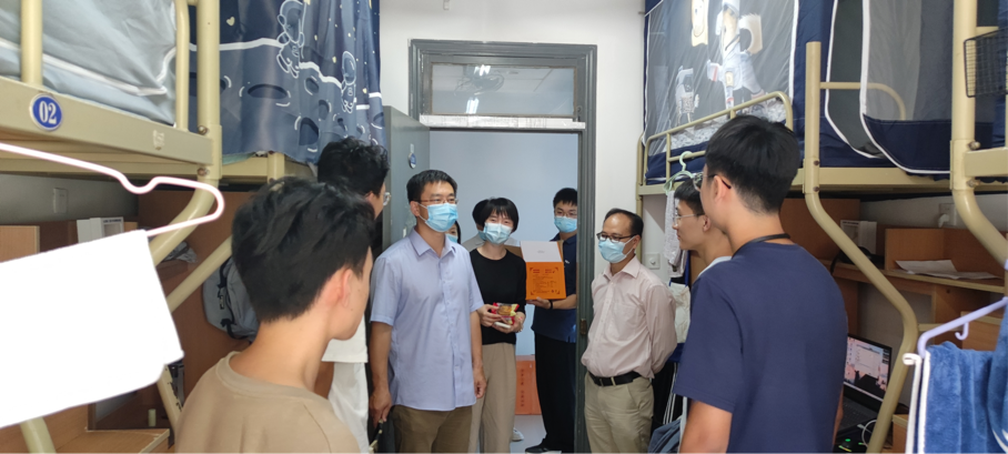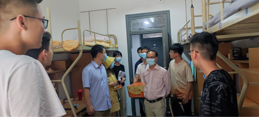 党委书记侯俊、院长王伶、党委副书记高敏、副院长高永胜、团委书记王嘉悦以及本科新生辅导员刘向阳和翟伟乐来到学生宿舍,向同学们送去节日的问候和关怀。