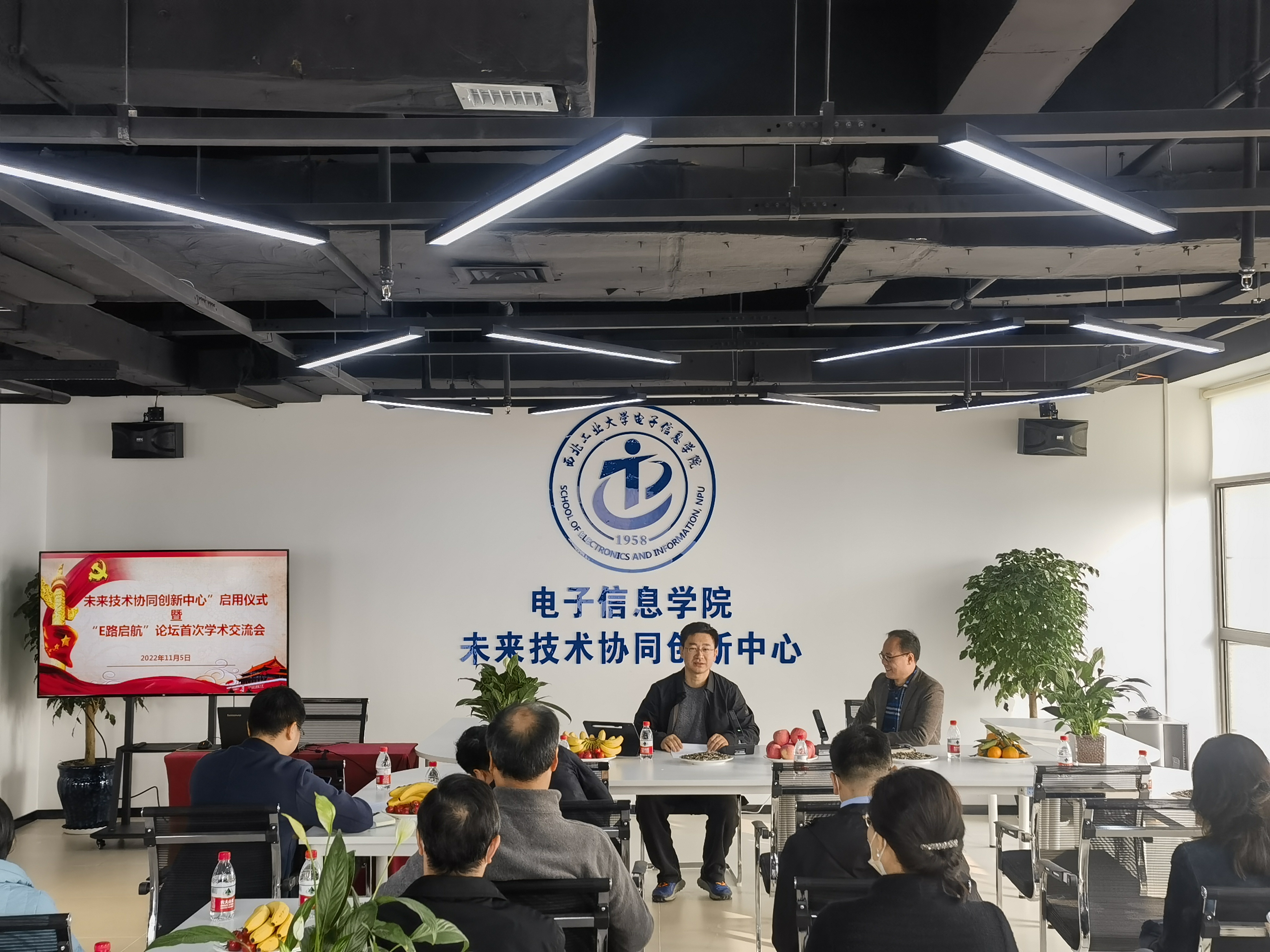 “未来技术协同创新中心”启用仪式在友谊校区科技创新大厦举行。党委书记侯俊,院长王伶,副院长张洵颖、姚如贵、高永胜,各系(中心)主任,学院科技发展委员会科技发展专家组成员,青年教师代表出席了本次会议,会议由党委书记侯俊主持。