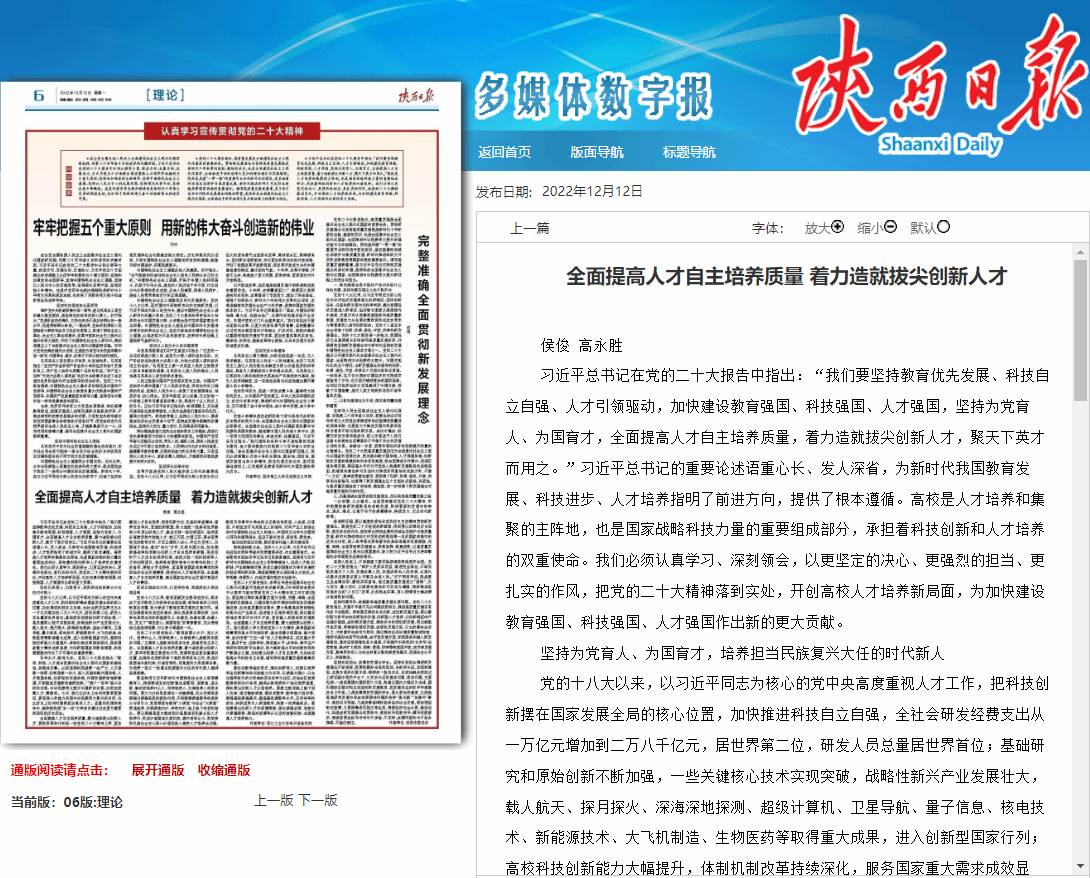 12月12日,《陕西日报》理论版“认真学习宣传贯彻党的二十大精神”专栏,刊登成人app