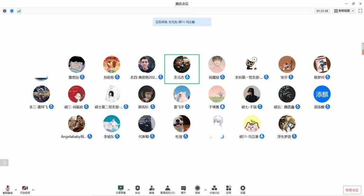 汇报结束后,学院党建专项辅导员支元杰对各位参评党员的履职表现做出肯定,并表示学院开展“百岗千人”计划旨在发挥学生的党员先进模范作用,同时也希望各位党员对该计划的具体落实提出更深入的意见和建议,争取下一年度“百岗千人”学生党员奉献计划的落实质量得到更高水平的提升。