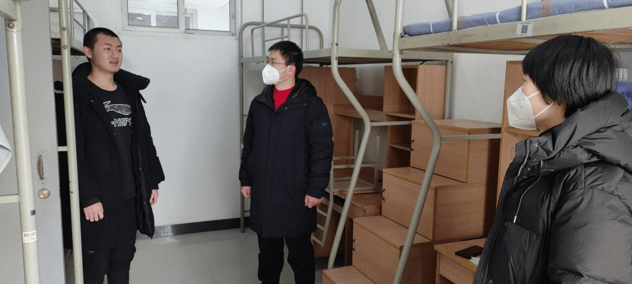 ,到海天苑1C和星天苑E座逐个走访并慰问了春节期间学院的留校学生,详细询问了每位同学的春节准备情况、近期的学习生活安排、当前的住宿和就餐等事宜,叮嘱同学们要关心关爱父母、与家人多联系、在学校度过一个有意义的春节,同时送上了学院精心准备的新春大礼包。同学们对学院领导的关心关怀表达了谢意,对学校寒假期间的住宿饮食保障也表示了感谢,同时表示将珍惜学校提供的良好环境认真完成学业。辅导员吴宝龙、刘向阳也参加了慰问活动。