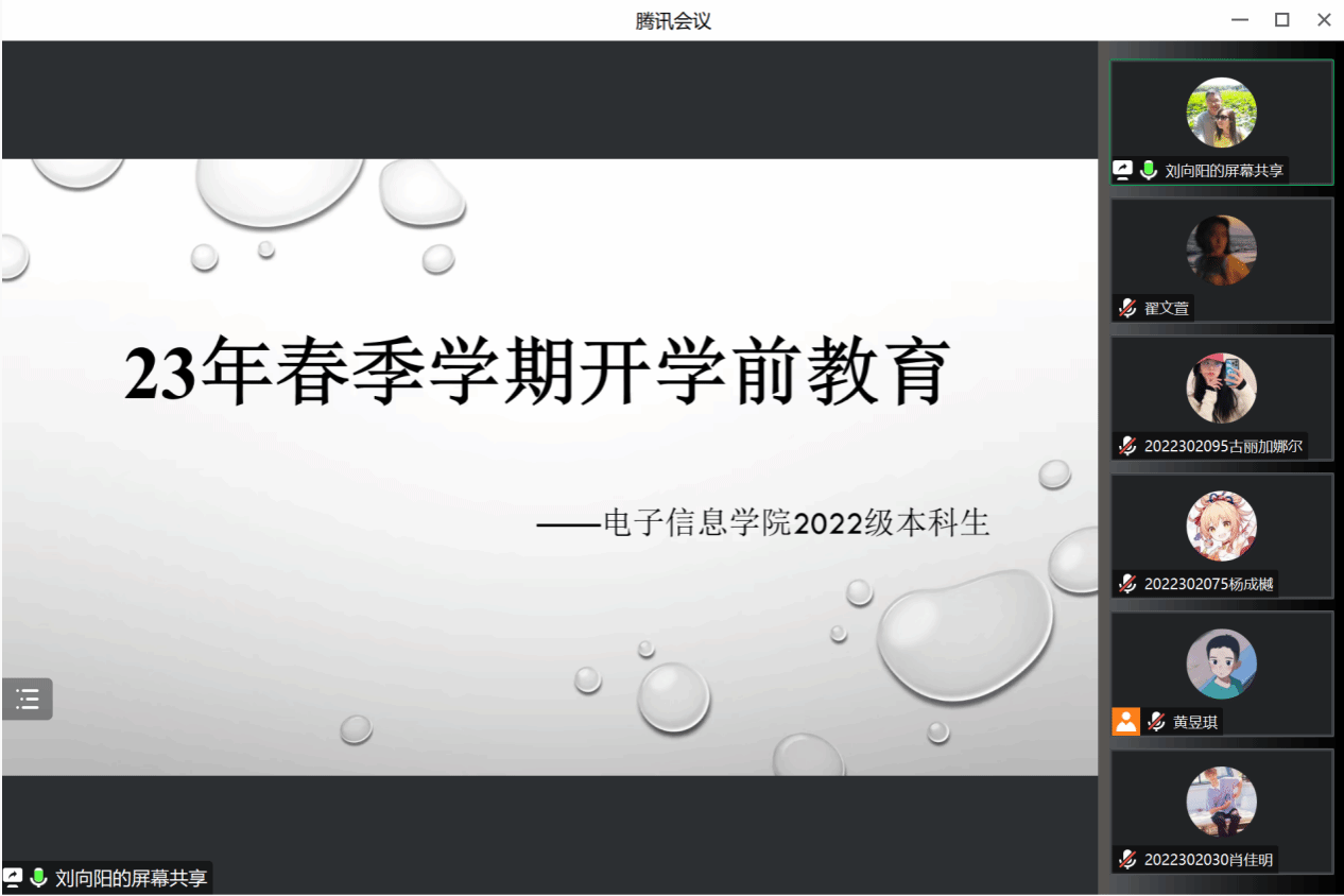 首先,辅导员刘向阳针对寒假期间社会实践相关问题,要求同学们合理安排剩余时间、及时完成相关工作、圆满完成一次高质量的社会实践活动,并及时做好实践总结。其次,结合学校《关于做好2023年春季学期开学前工作的通知》要求,从返校时间与方式、返校健康要求、返校报批要求、返校中途防护要求等方面,详细介绍了返校工作的具体要求,强调了同学们返校过程中的注意事项。