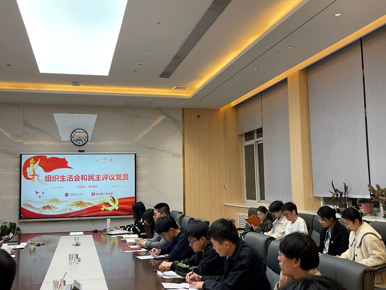 硕士第六党支部在学院楼159会议室召开2022年度组织生活会并开展民主评议党员工作,学院党委书记侯俊到会督导,会议由党支部书记龚杰主持。