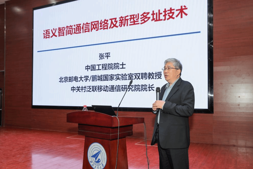 何明一教授介绍了张平院士在信息与通信领域取得的重要贡献,诚挚欢迎张院士做客我校翱翔灵犀学术殿堂,为我校师生带来“开学第一课”系列之《语义智简通信网络及新型多址技术》专题报告,感谢张院士为学校的学科建设、科学研究、人才培养等方面做出的贡献。