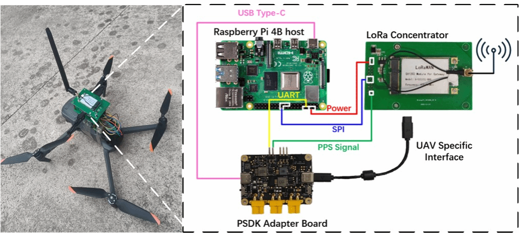 该系统利用无人机的机动性、高度优势以及遥控器的中继特性,有效提升LoRaWAN网络覆盖范围、通信可靠性;LoRaWAN网关与无人机高度集成,基于无人机负载实现网关供电、时间同步、GPS信息获取等功能,并支持GPS拒止环境下的终端定位;该系统能够接入已经部署的LoRaWAN商用网络,形成高低搭配地空一体化”LoRaWAN网络,显著提升系统的应用可扩展能力;已申请国家发明专利1项。