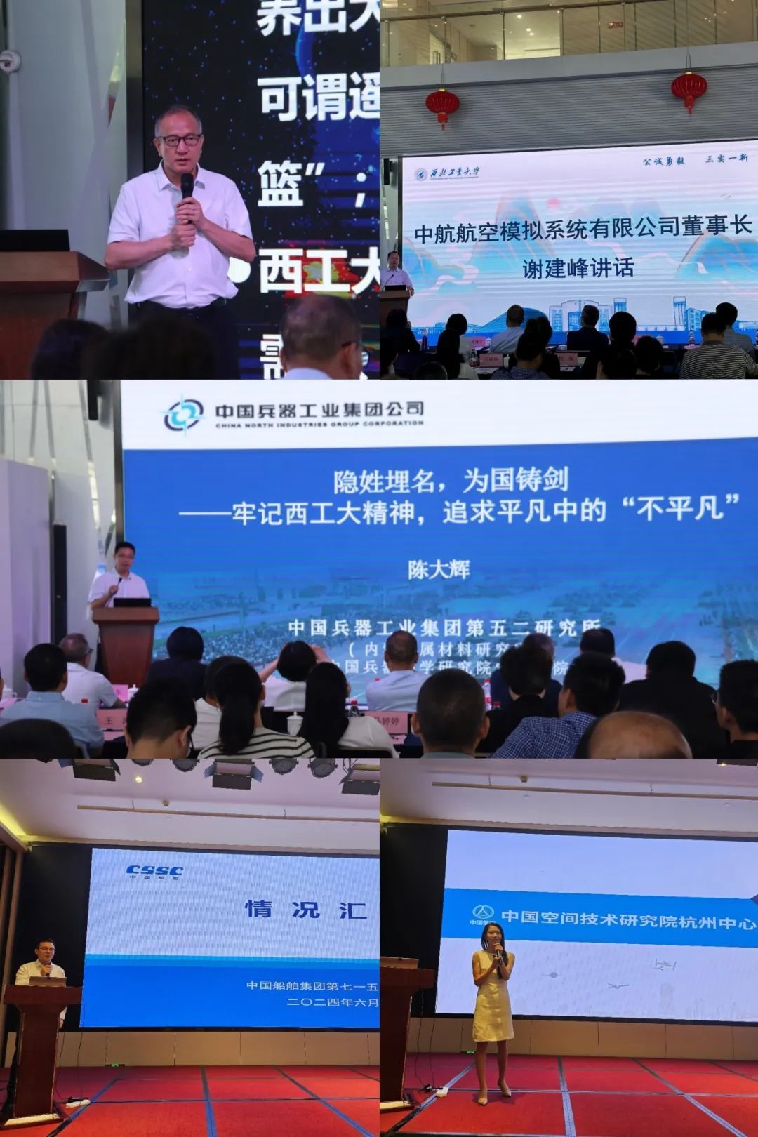 第十二届全国人大代表、中航工业成都飞机工业副总工程师洪建胜校友出席论坛为母校宣传;中国航天科技集团卫星型号副总师苏继东校友作“仰望星空,脚踏实地——报考西工大开启逐梦人生”报告;中国航空工业集团副总师、中航航空模拟系统有限公司董事长谢建峰校友分享他从宁波考入西工大,并在西工大和航空工业集团追逐梦想、最终成为副总师和院所领导的经历;中国兵器科学研究院宁波分院特种活塞专业室主任陈大辉校友作“隐姓埋名,为国铸剑——牢记西工大精神,追求平凡中的不平凡”报告;中国船舶集团第七一五所人力资源处副处长刘柯翟校友作“中船七一五所中的西工大现象”报告;中国空间技术研究院杭州中心人力资源部副部长(主持工作)应雯分享了西工大毕业生在中国空间技术研究院杭州中心快速成长的典型案例。
