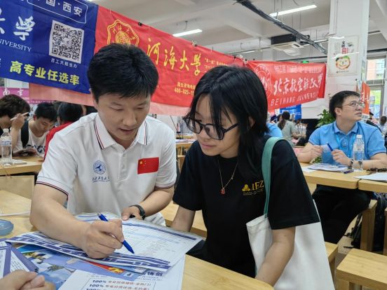 6月28日,侯俊来到杭州第二中学高考志愿填报咨询活动现场,为考生及家长答疑解惑,针对学生关心的录取分数线、专业就业前景等问题一一作答,现场气氛热烈。