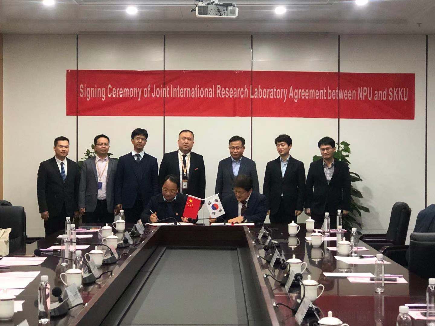 随后,访问团就太仓校区、长三角研究院建设发展情况,建立西工大-成均馆大学联合研究实验室进行座谈交流。郑曦常务副院长代表长三角研究院与太仓校区管理委员会热烈欢迎访问团一行的来访;长三角研究院张铁邦副院长介绍了长三角研究院情况;周德云院长简要介绍了我校和成均馆大学关于合作办学的进展和筹备情况,并介绍了国际联合研究实验室的科研方向和目标;张富利处长表示大力支持我校和成均馆大学的合作办学,并提出了明确要求;郑曦常务副院长作了总结发言,代表太仓校区管委会和长三角研究院表示大力支持我院与成均馆大学建立国际联合实验室落户太仓。座谈结束后,June-Ho Yi院长和周德云院长签署了国际联合研究实验室合作协议;张富利处长和郑曦常务副院长共同为长三角研究院国际合作部揭牌。